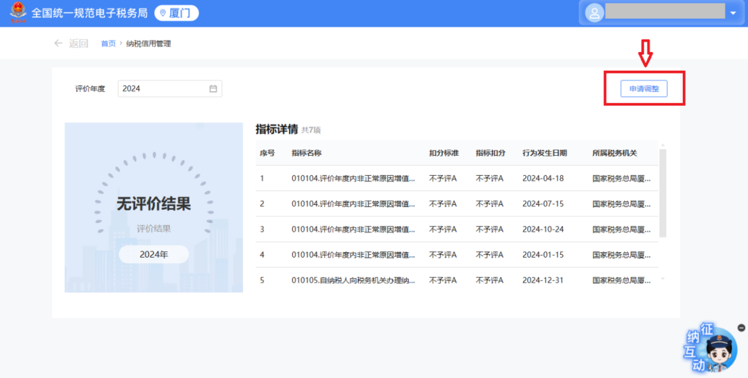 如果您对2024年度纳税信用指标评价情况有异议,可于2025年3月31日前通过电子税务局申请纳税信用复核。
