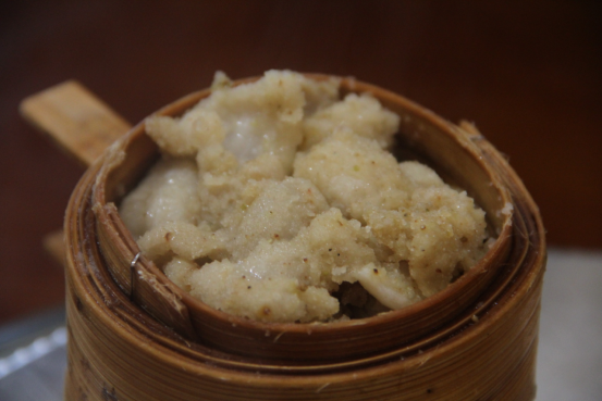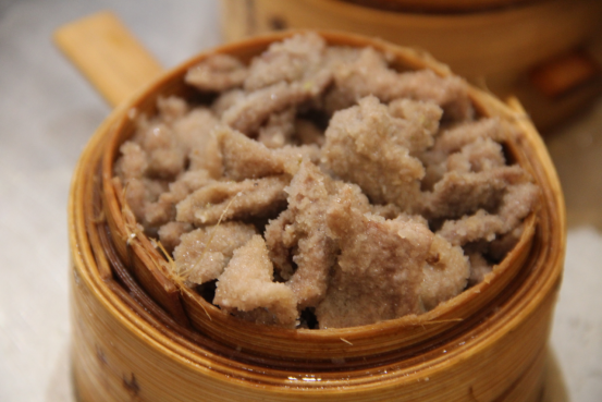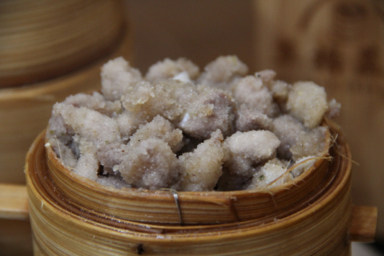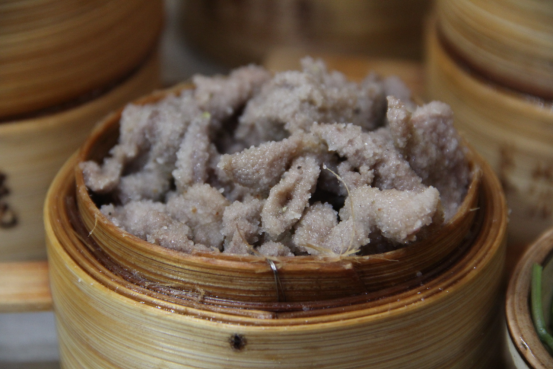 草塘蒸笼原料来源于市场上上等的黄牛肉,猪仔排,精肥肠,猪舌等。将上等的黄牛肉、大肠、猪舌、仔排买回来清洗干净,大肠除去异味和肥油,猪舌去掉舌苔。然后将牛肉切成筷子大小的丝、肥肠切块、猪舌切片、仔排切成食指大小的丁,放食用油将水分锁住备用。待用时放盐、胡椒、花椒、酒酿、鸡精调味,再将秘制的糯米面撒上与其拌匀,将拌好的食材上蒸锅蒸5分钟左右即可食用。酟料选用上好的遵义虾子辣椒用柴火炮制配上香菜、葱花即可食用。